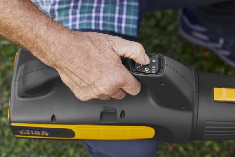 Den batteridrevne løvblåseren BL 700e er lett og kraftig. Batteriet er på 48 V 4 Ah (følger ikke med!), og har en imponerende arbeidstid på 120 min ved lav hastighet, 26 min på middels og 18 min på full hastighet. Det effektive ventilasjonsgitteret på begge sider og nedre del, forbedrer luftstrømmen og effektiviteten. Du kan enkelt velge mellom tre hastigheter ved hjelp av det intuitive kontrollpanelet